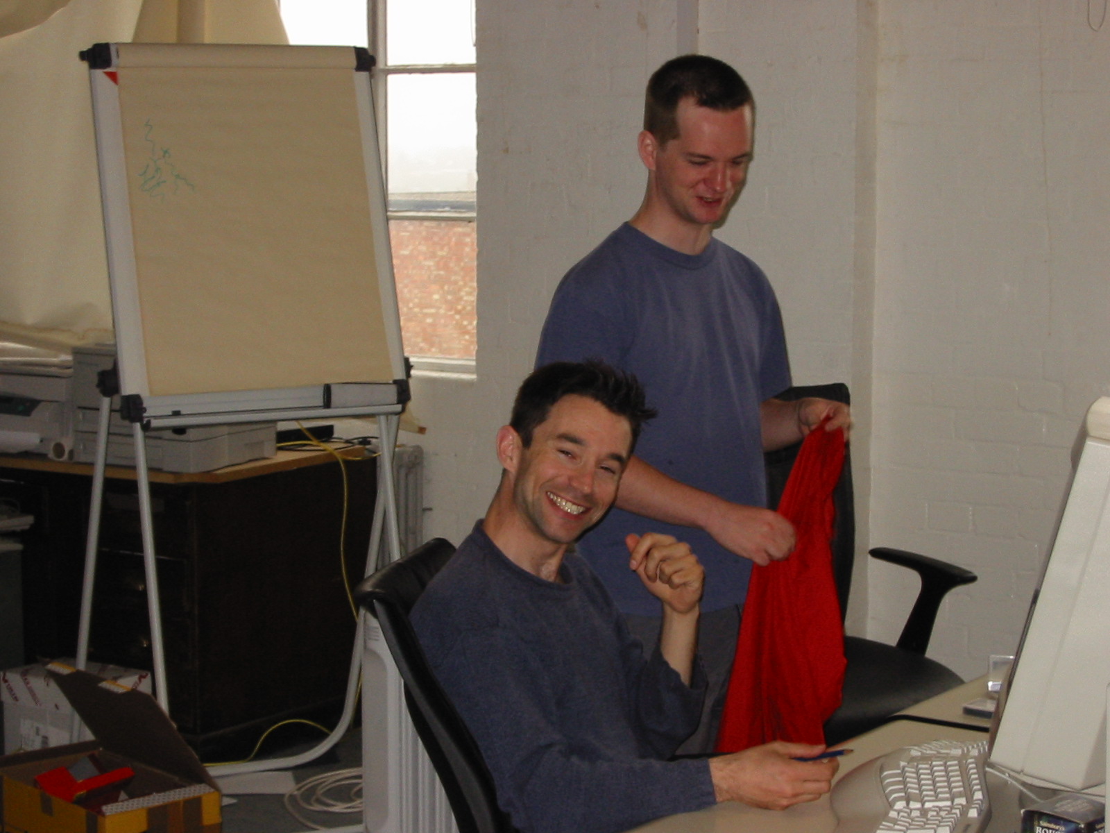 Luke and Andy and one very cheesy grin at the office